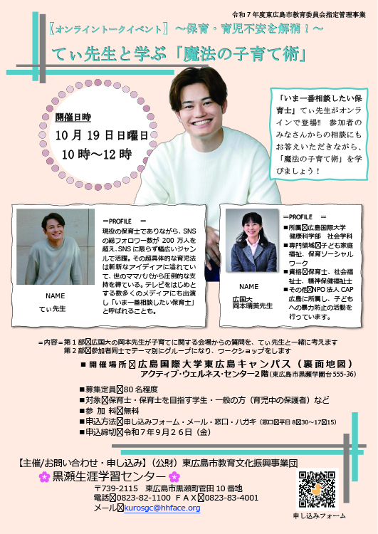 【オンライントークイベント】~保育・育児不安を解消!~てぃ先生と学ぶ「魔法の子育て術」を開催!